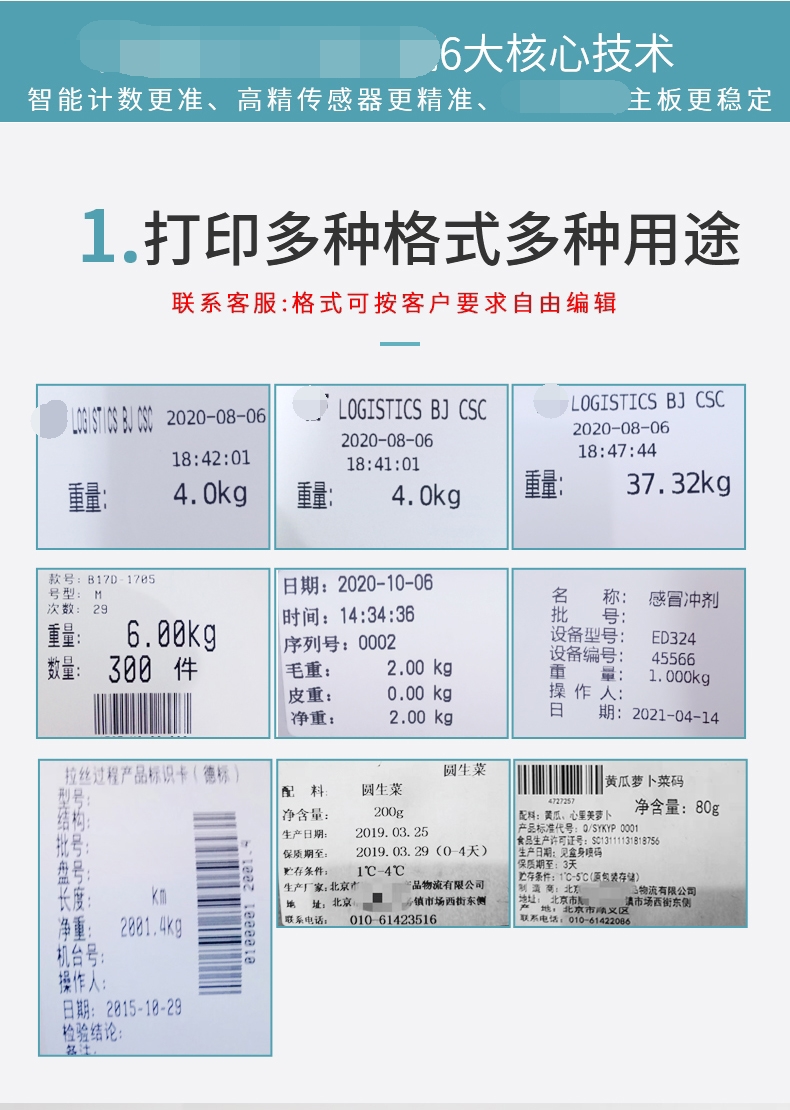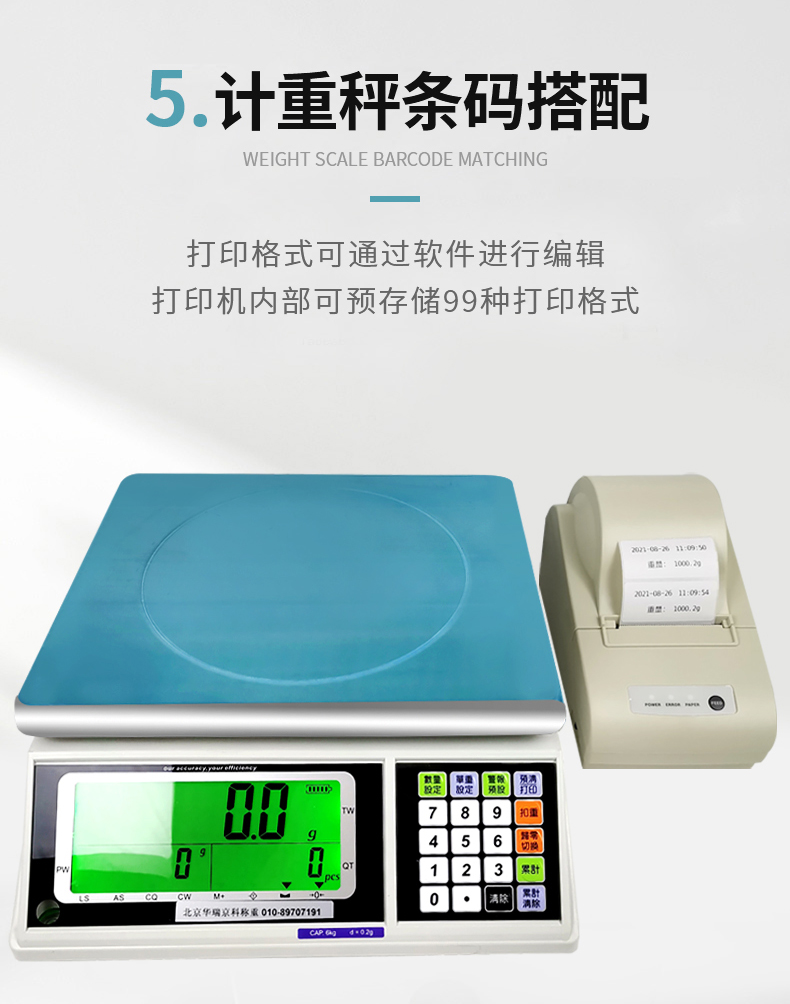 打印功能描述:1、可存储 500 个品名
