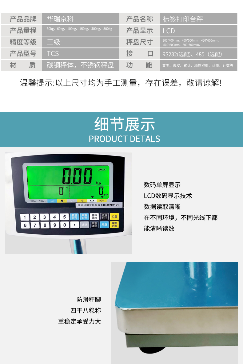 量 程:30kg/60kg/100kg/150kg/300kg/500kg